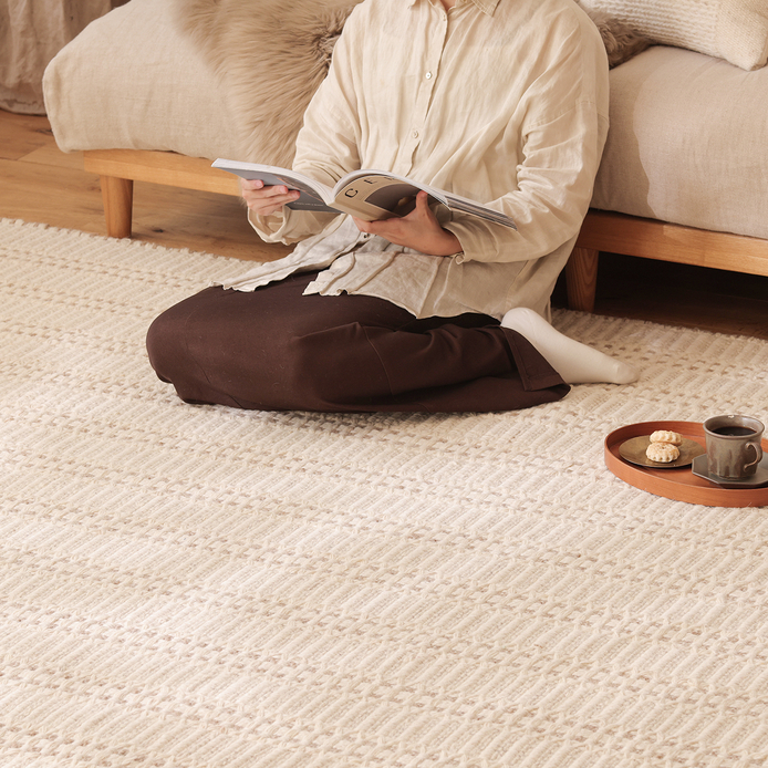 こうしたぬくもりは、化学繊維のラグマットには出せないウールならではの特別な魅力です。