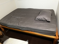 薄めのベッドマットに掛けてみました。少し余るけど気にせず使います。