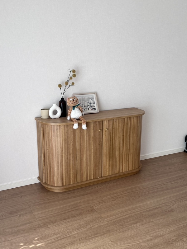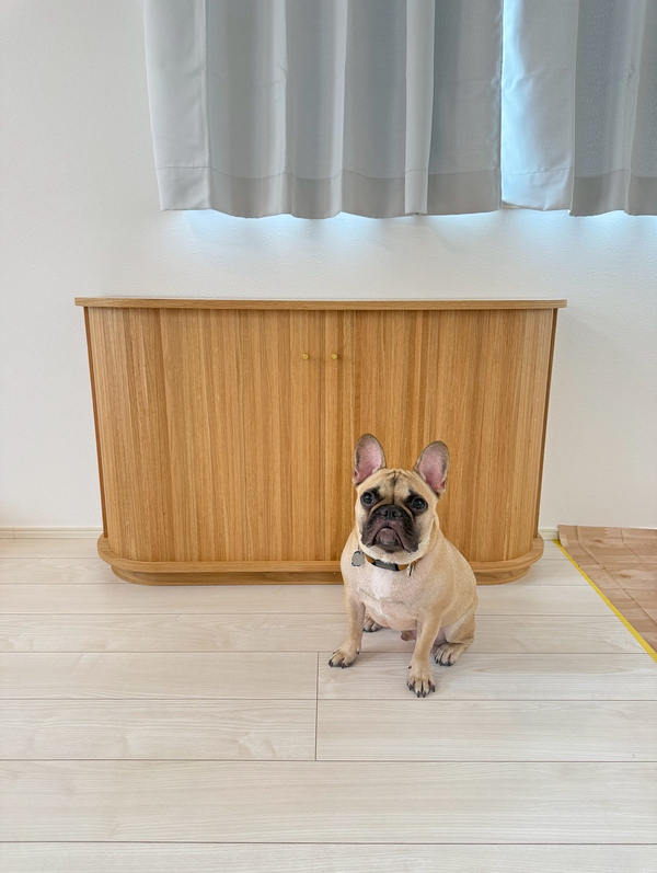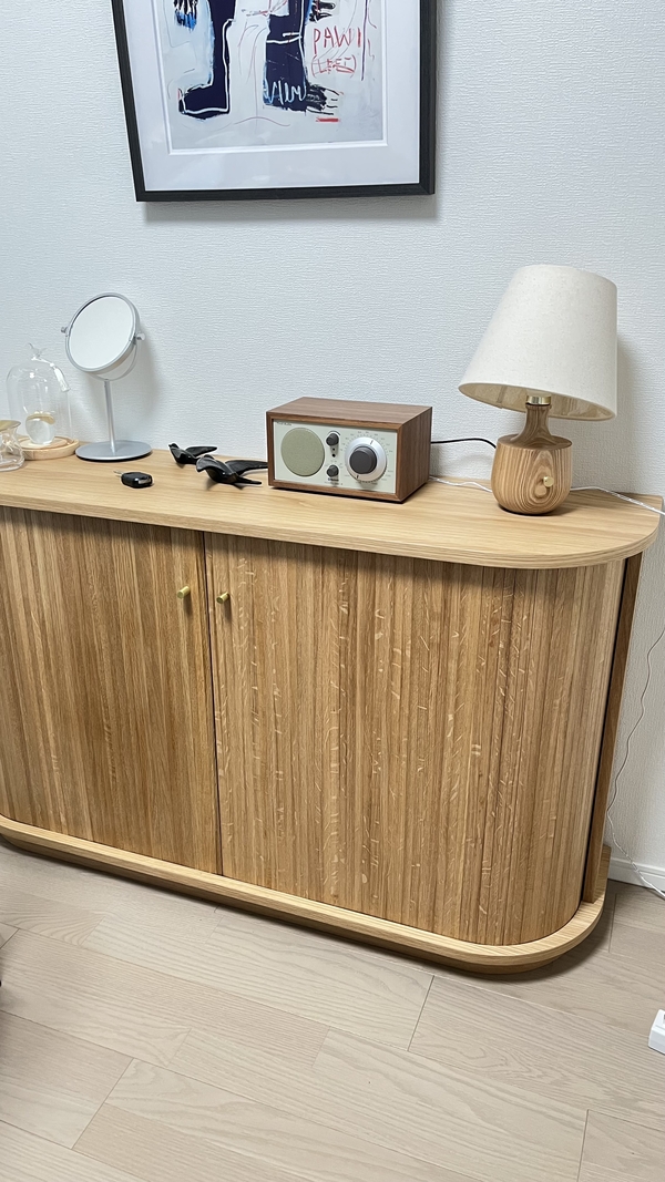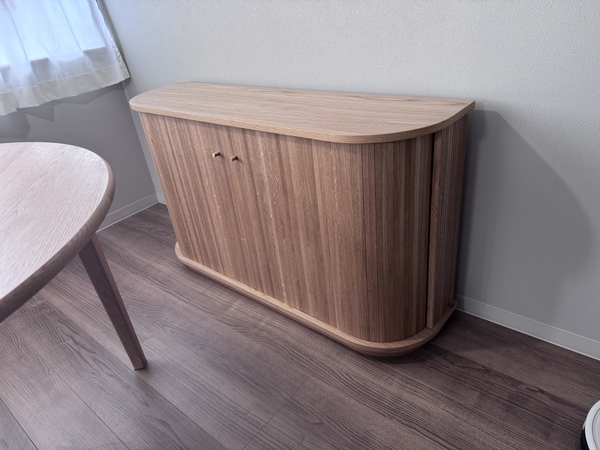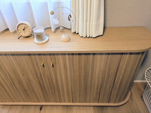 ・見た目がとても可愛いです。玄関先から家具の側面が見える配置のため、壁の様に空間が遮断されるのが嫌でしたが、ラウンド曲線で空間に馴染んでくれました。