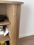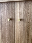 コンパクトな奥行きのため、圧迫感がなく、ただただ可愛いです。木目の個性も1点ものとしての魅力の一つですし、ゴールドの取っ手がとっても気に入りで、意味もなく開け閉めしてしまいます。