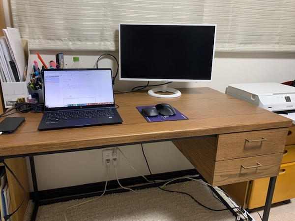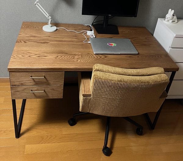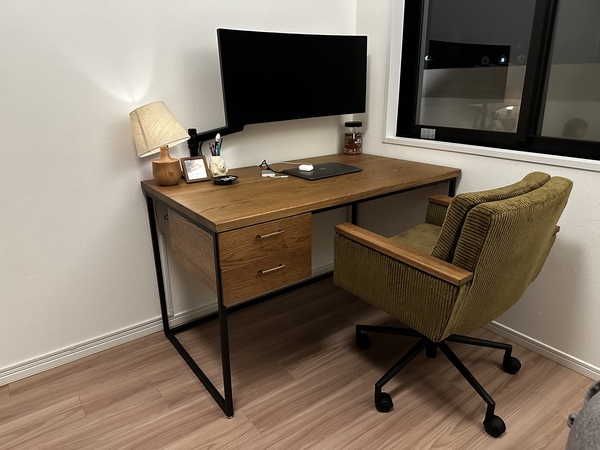 このデスクがある部屋は木の香りがして気持ちも良い。お家でのデスク作業が多い方は是非購入をおすすめします。