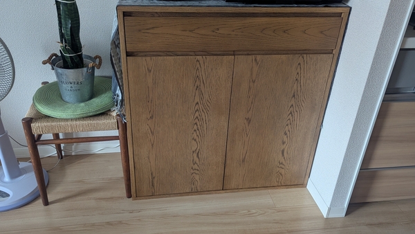 来客時以外は玄関の荷物の一時置き場に、と思っていましたが、