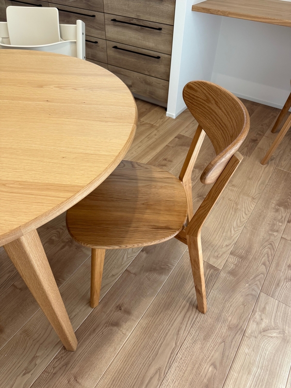 子供がいるため、食べ飲みこぼしに対応出来る木製の椅子を探していましたが、木の質感も良くガタつきもなくしっかりした作りでとても素敵です。