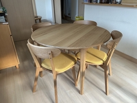 店舗にて購入。即決でした。新居用に丸いダイニングテーブルをずっと探しておりましたが、