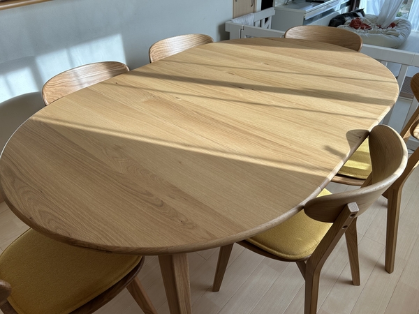 普段使いには110cmの円形でゆったりと十分だけど、家族や友人が集まる時には延長して使えるforkに目がとまりました。