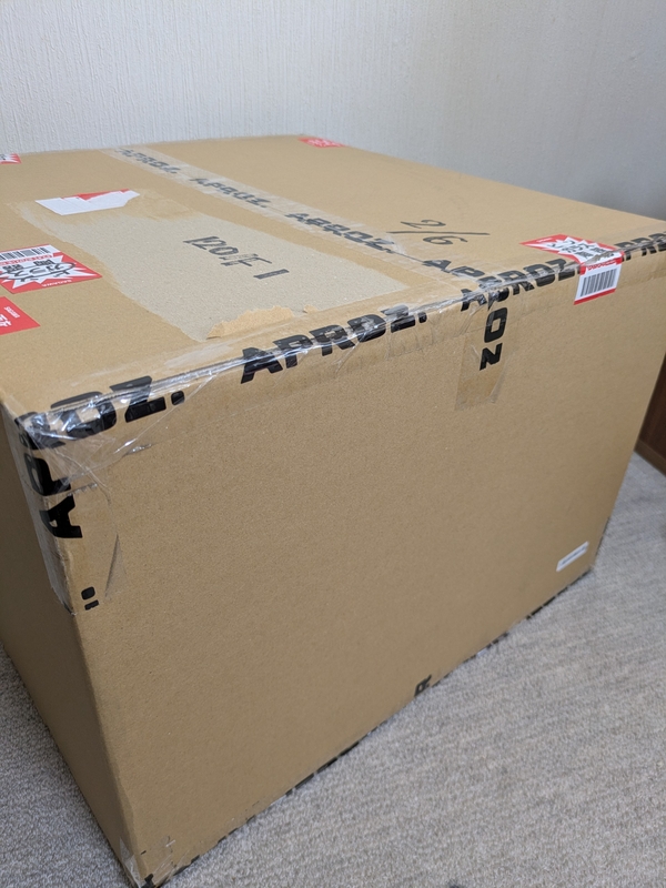 商品の組み立ては5分で終わるのに、段ボールのビニール剥がしから段ボール折りたたみまで、15分要しました…。
