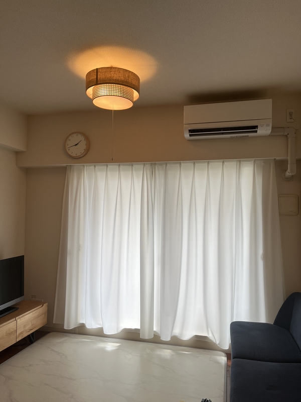 カーテンを部屋につるすと、体感温度が明らかに違う!明るさは取り入れつつ、透けてはいない。