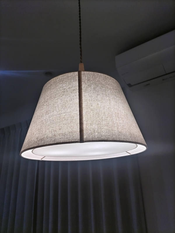 電源コードからシェードまでが、シンプルなデザインなのですが、素材感がしっかりしていて、非常に気に入ってます。できればスマート電球にして調光が出来るようにした方が、シーンに合わせて光の調節ができるので良いかと思います。