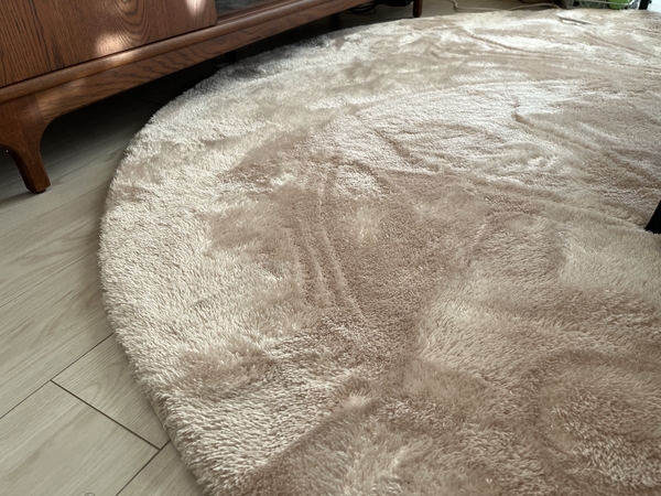 色々検討する中で、ふかふかの肌触り、洗える、ズレない、軽い、そして円形という条件を満たすラグをずっと探している中でこちらに出会いました。
