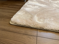 ふわふわで気持ちが良く、適度に厚みがあるため床の硬さも気になりにくくよかったです。ミルクティーカラーにしましたが、ピンク味の入った柔らかいベージュでとてもいい色で気に入りました!ピンクが強すぎないので、浮くことなくフローリングに馴染んでくれます。