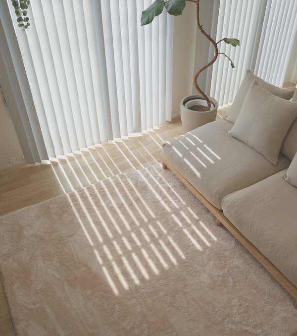 その際「リビングには白いラグを置くつもりです」と伝えたら、こちらのラグを紹介してくださいました。