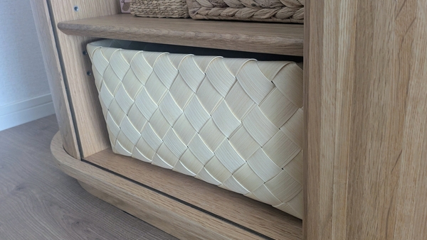 寝室のパジャマ入れ、タオル入れに使っています。触り心地が柔らかくてバスケットの硬い感じがなく、部屋の雰囲気を優しくしてくれます。色もとてもよく、重宝しています。