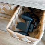 天然のカゴとちがい、ささくれないし、汚れたら水洗いできるので気持ちよく使えています。