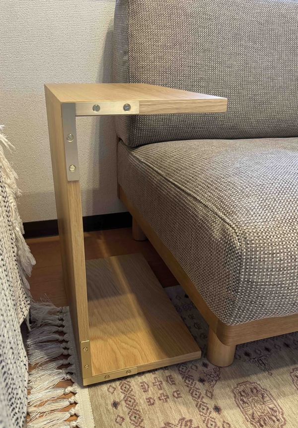 サイドテーブルをずっと探していたところこちらのシンプルでスタイリッシュなデザインに惹かれて購入。小ぶりでソファサイドに差し込めるので場所を全くとらず部屋を広く使えます。真鍮の留め具がおしゃれで他の家具や床とも馴染み満足です!
