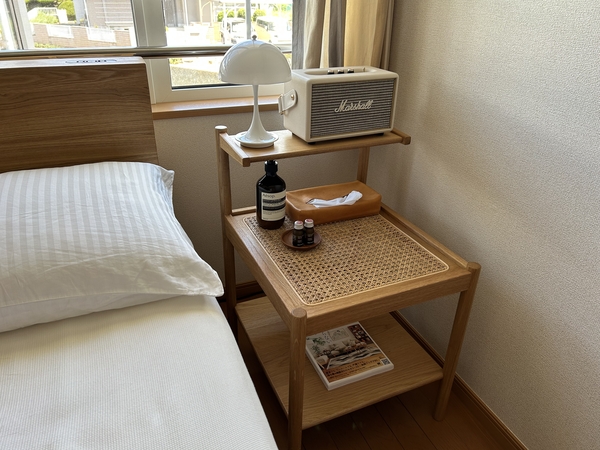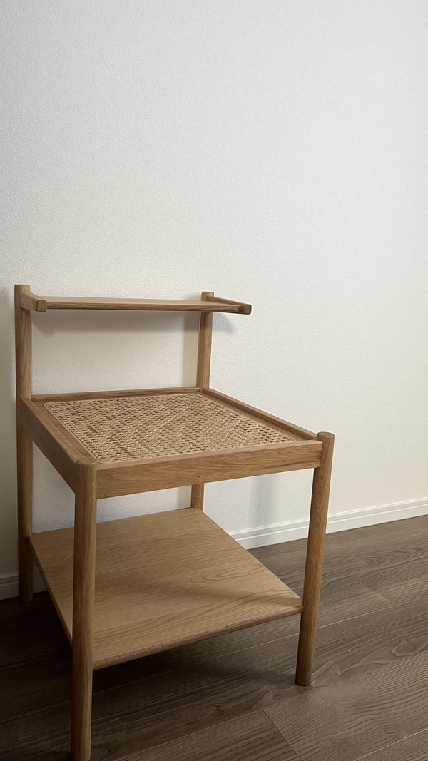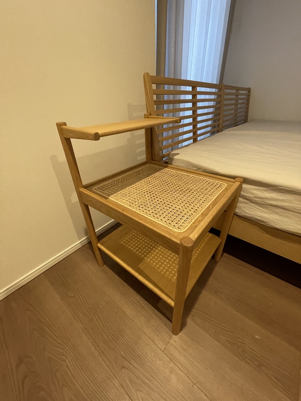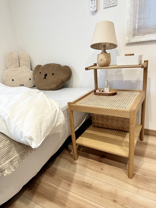 寝室を一新するためにベッドと合わせて購入。木の暖かい素材感と、ちょうどいいサイズ感&機能性に惹かれて購入しました。