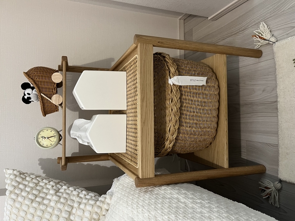 子供たちのおむつ替えセット、寝る前に読む絵本、ライトや時計、水筒などベット脇でごちゃごちゃと散らかっていたものが整頓できてスッキリしました。