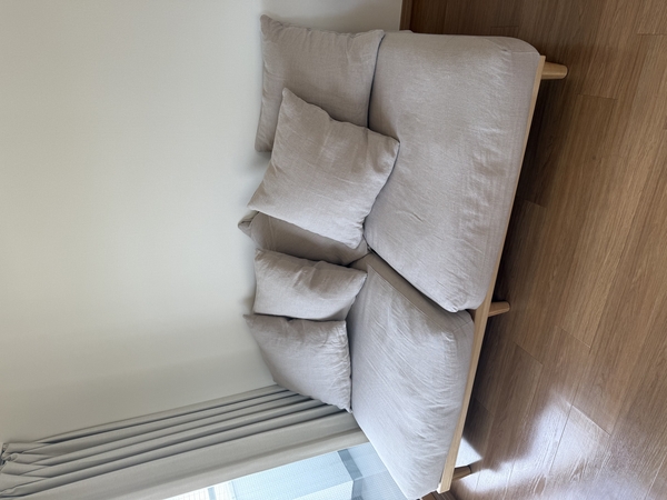 購入後スタッフの方に質問すると、座面クッションは両面使えるので定期的に向きを変えるのがオススメとか、リネンカバーの風合いが使うほど柔らかい質感に変わることなど、丁寧に教えていただきありがたかったです。