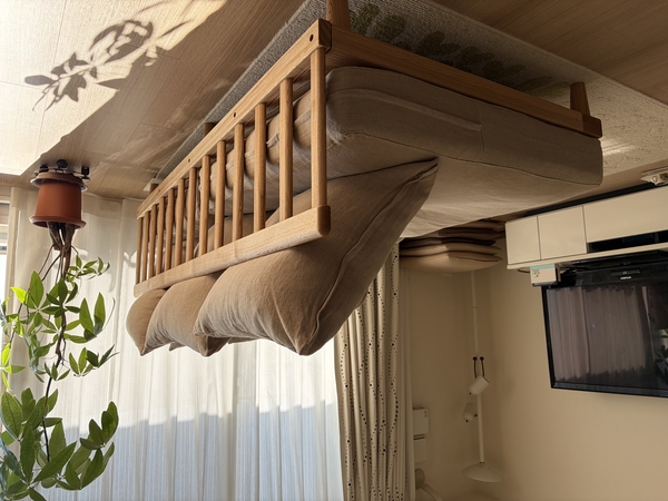 今は北側の子供部屋が寒いので中学生になる息子がクッションを外してここで寝ています。こんな使い方もできて全体的に満足しています。あとはどのくらい現状維持できるかをみて行きたいです。