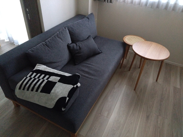 色や生地の触り心地はそこまで期待していなかったのですが、グレーは他のインテリアの色にも馴染み、サンプルで感じたより触り心地も気持ちいいです!