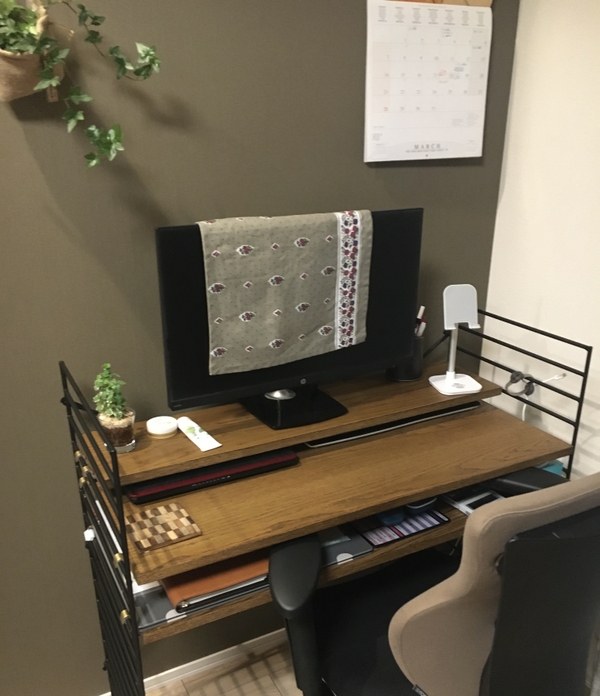 デスクを置きたかったのですが、もしかしたらあんまり使わなくなるかも・・・という不安もあったので、デスクにも棚にもなるのは目から鱗でした!