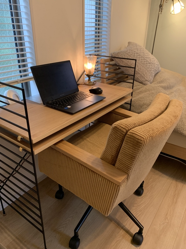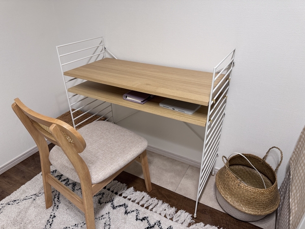 寝室に置けるシンプルでコンパクトなデスクを探していて、このセットが理想通りでした。ペーパーコードチェアとの組み合わせが素敵で、別メーカーですが購入して、合わせました。