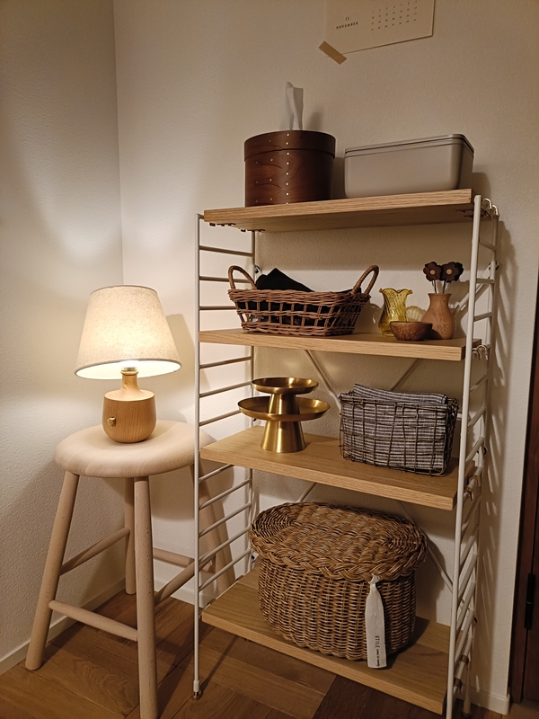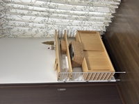 手持ちのシェルフを下の空きスペースに設置したので、既製品を購入せずに済み、自由度が高くて便利だなと感じました。