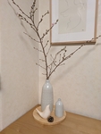 今までは硝子のフラワーベースを置いていましたが、お花やグリーンがなくなるとただ寂しいだけになってしまいました。
