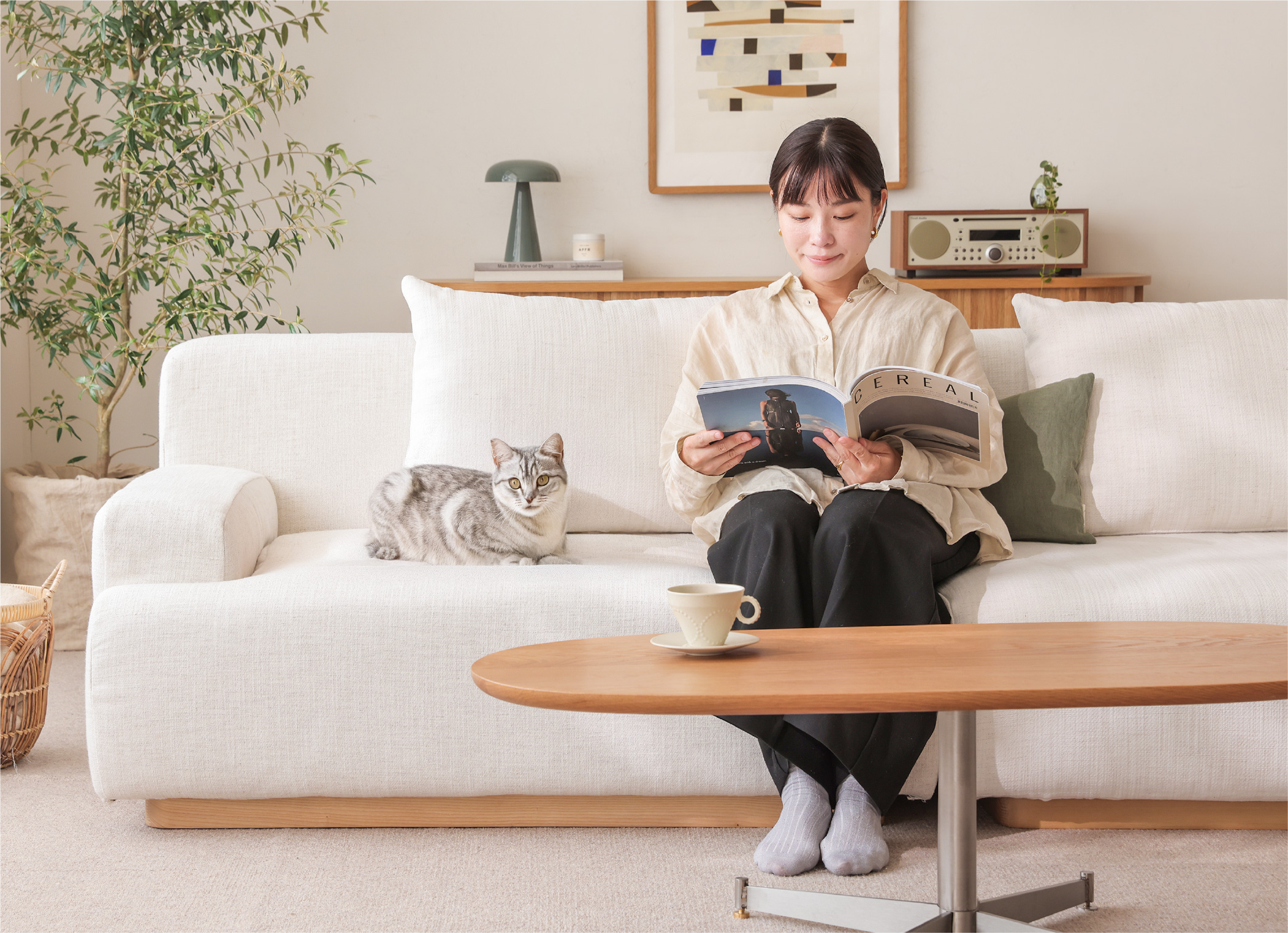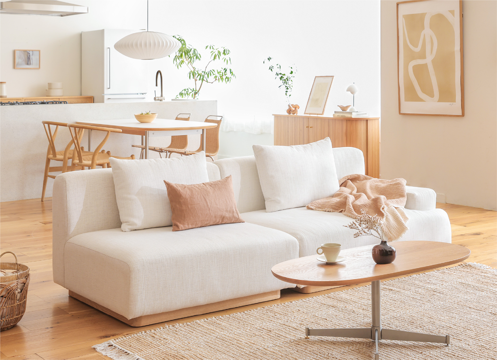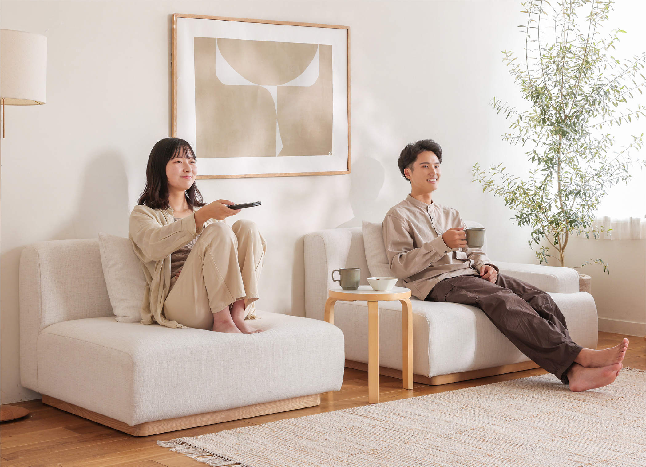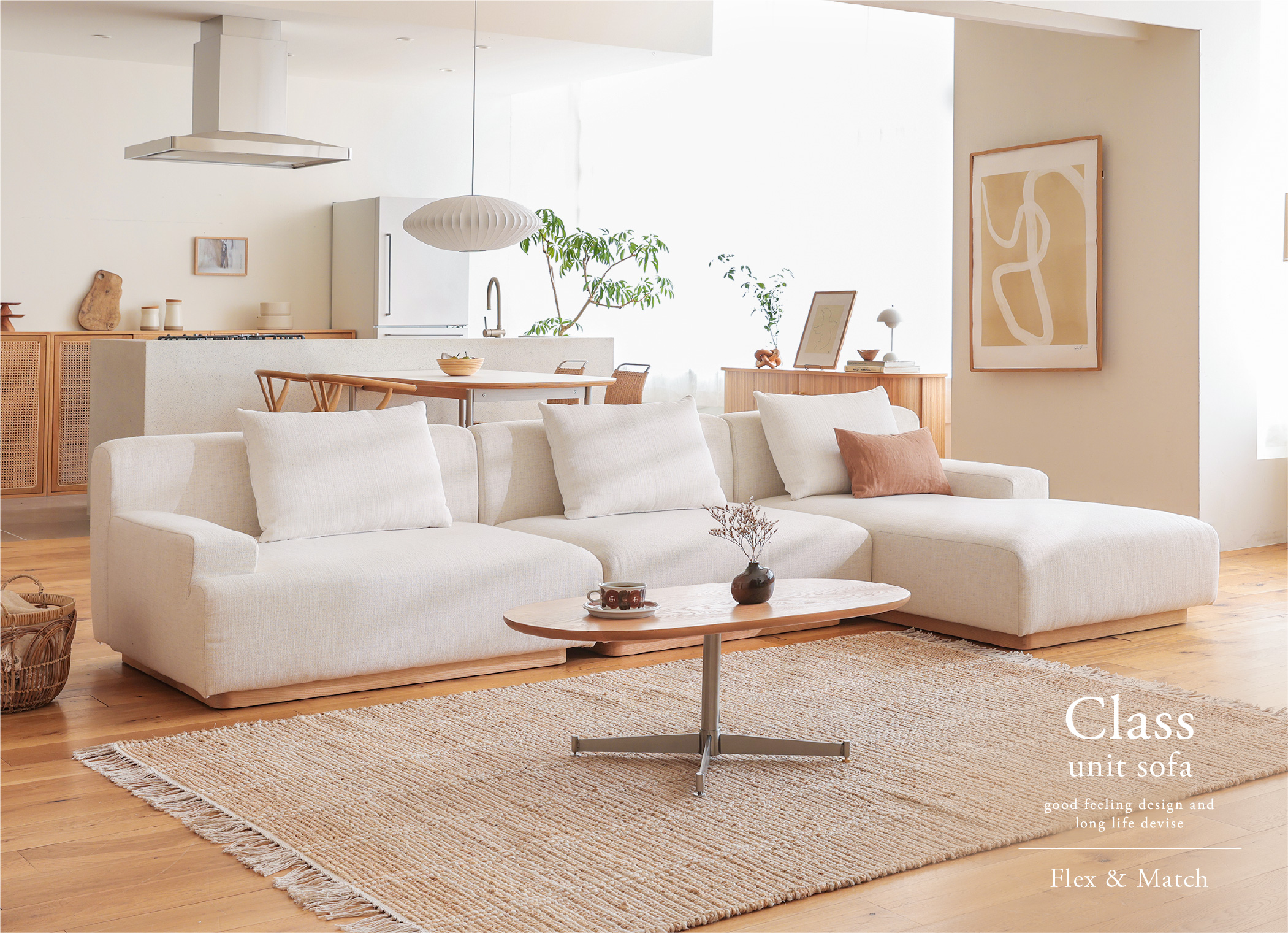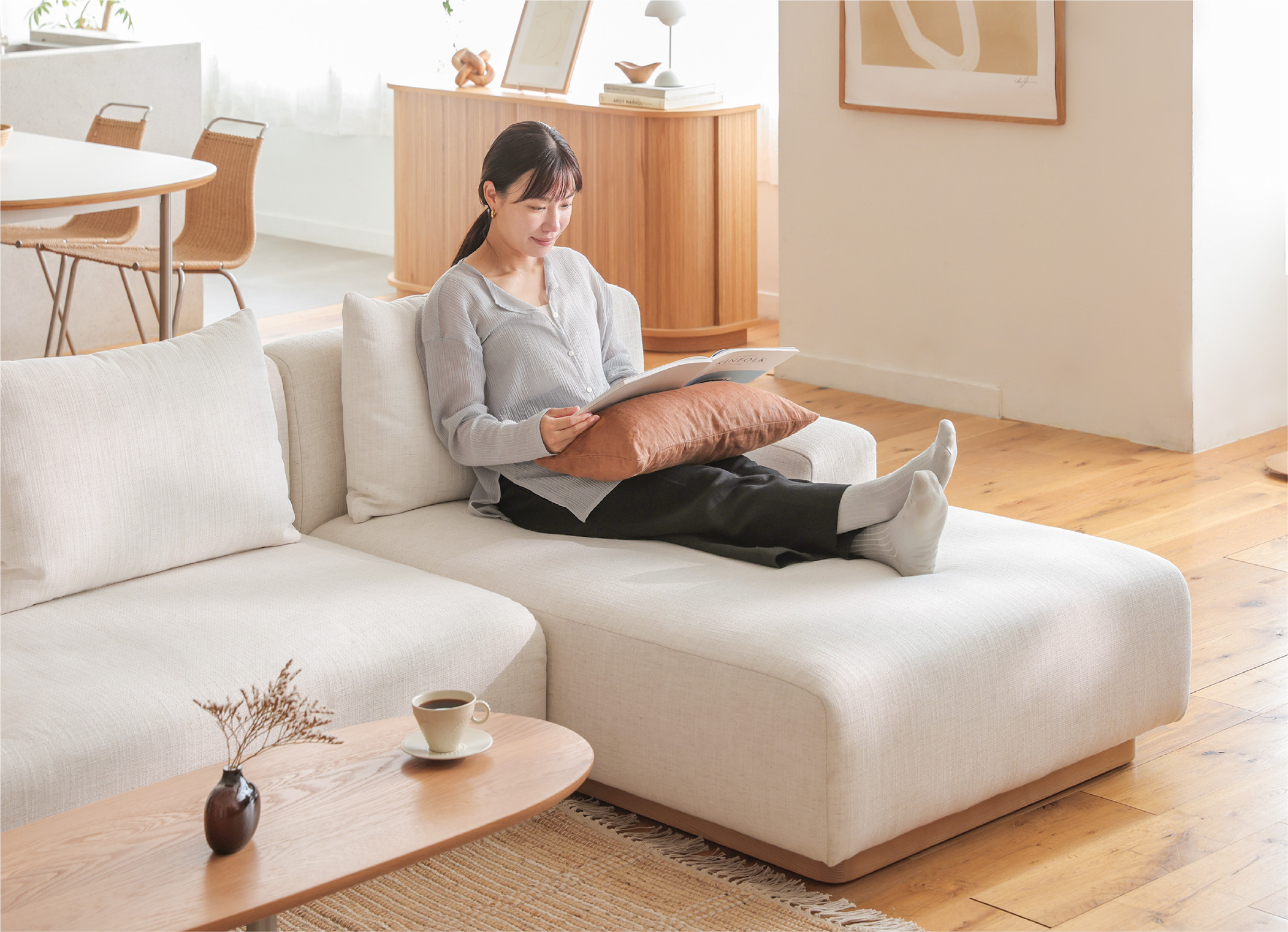 暮らしに合わせて形を変えられる「rect unit sofa(レクト ユニットソファー)」シリーズ。幅や奥行きの違う4つのタイプと、6色のカラーを自由に組み合わせることができます。