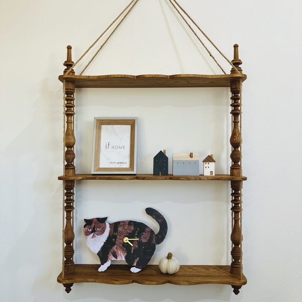 独特の繊細な彫りが入った支柱が特徴で、その優美な意匠デザインは、一般的なシンプルなウォールシェルフとは異なる趣きを感じさせてくれます。