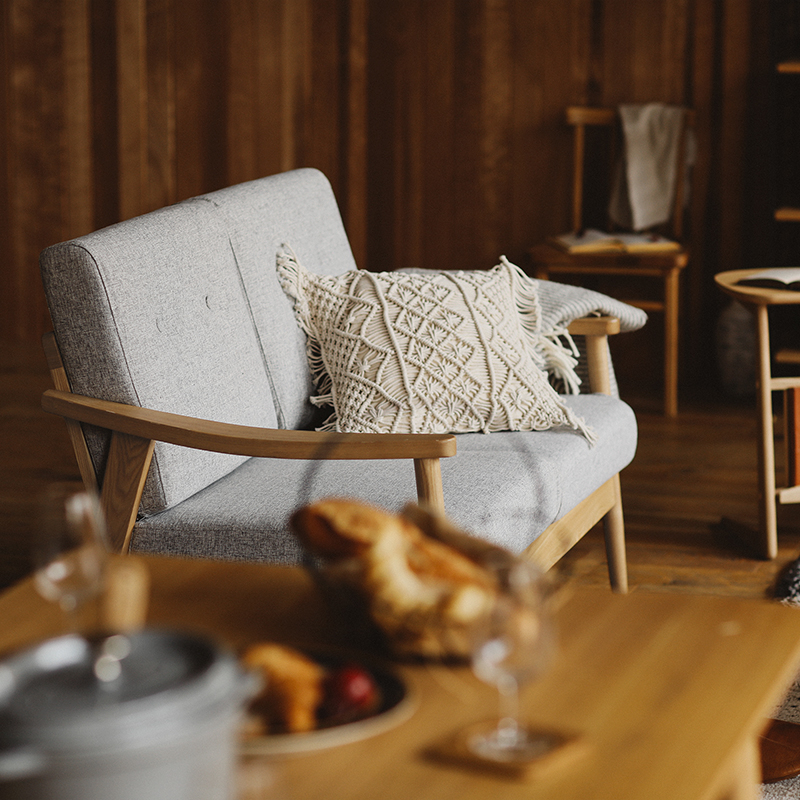 爽やかなデザインと木の温もりはそのままに、お部屋のサイズやシーンに合わせられるよう、2人掛け以外にも3人掛け、1人掛けタイプをご用意しました。