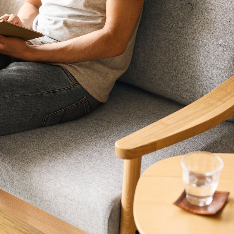 奥行きが浅い座面とハリのあるクッションと共に、チェアーのようなしっかりとした座り心地を生み出します。座った時に安定した姿勢が保てるので、長時間の読書やティータイムも快適に楽しめます。