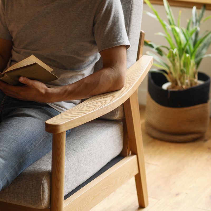 こちらは1人掛けタイプ。幅 73cmとコンパクトなサイズで、ちょっとした休憩スペースなどにオススメ。ベッドルームの一角などに小さめのテーブルとセットすれば、寝る前に腰掛けてゆっくり読書できるスペースに。