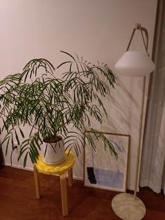 賃貸で、隣のおうちとの間の壁が固すぎて壁掛けができないのですが、棚のうえに乗せるだけでも良い雰囲気ができたと思います。