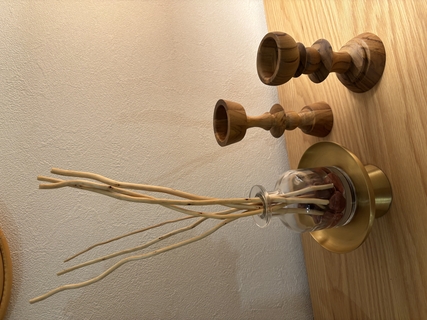 小物やアクセサリーをおこうと思いブラスケーキスタンドを購入しましたが、ディフューザーをのせて飾ってみました