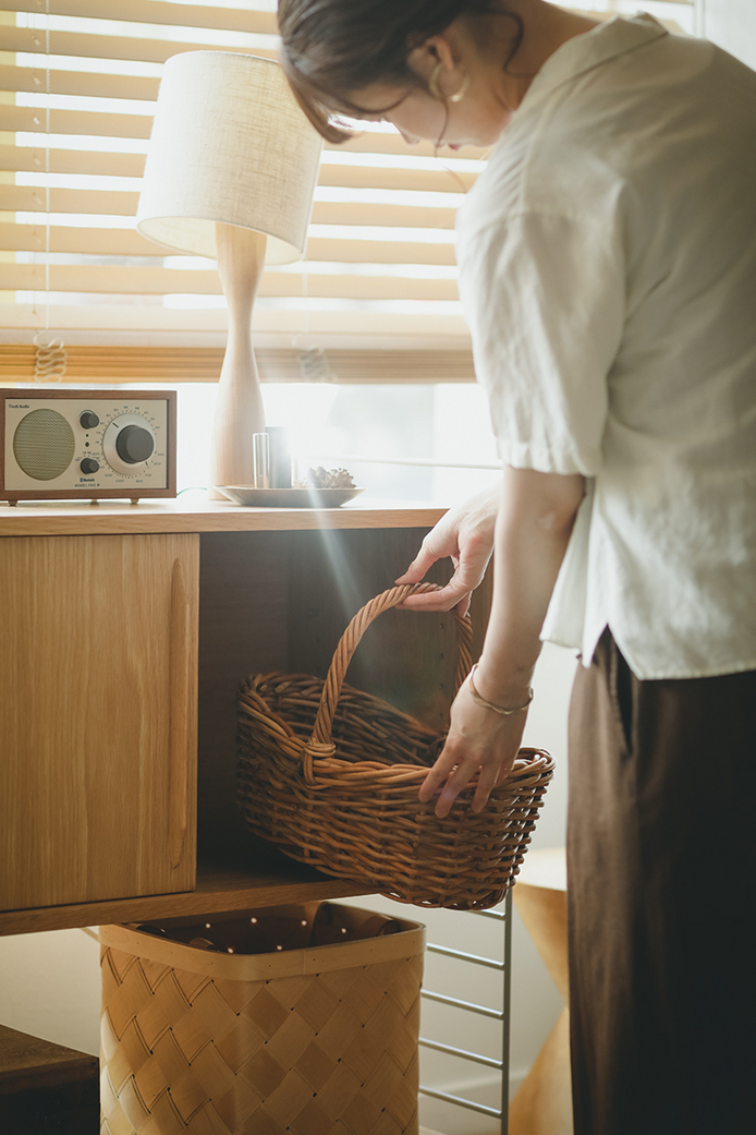 中身が程よく隠れるので、入れたいものを入る分だけたっぷりと。生活感を抑えながら、暮らしのアクセントに。
