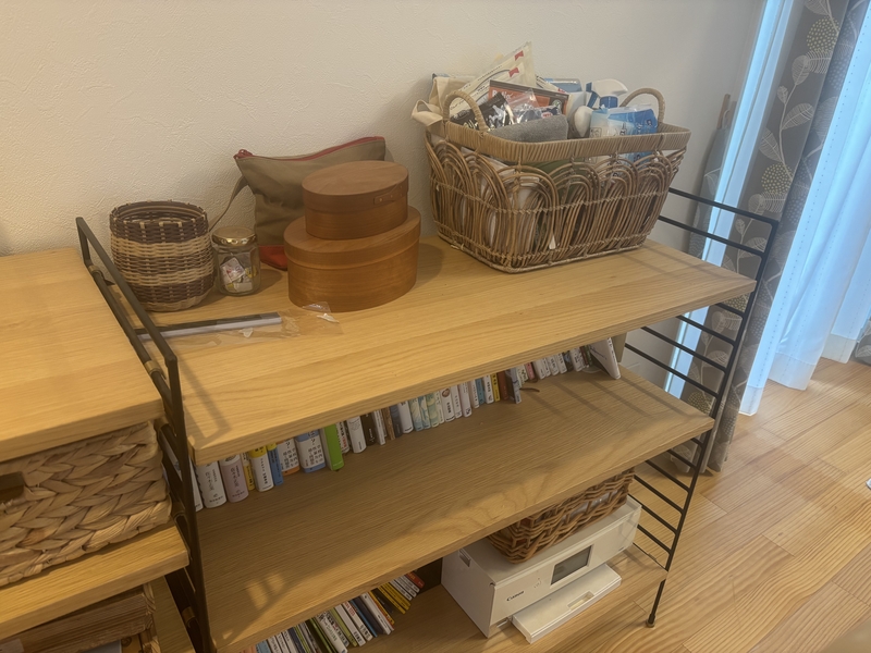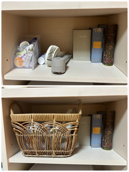 適当に置いていたものが、カゴに入れるだけでおしゃれに整いました。