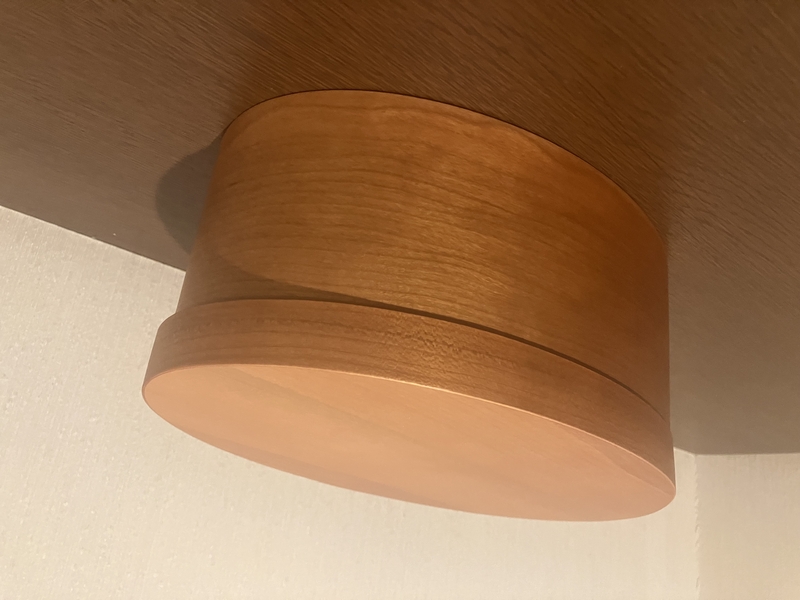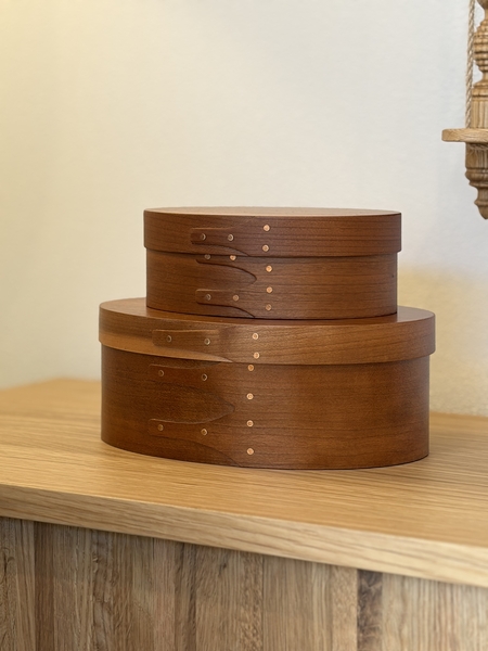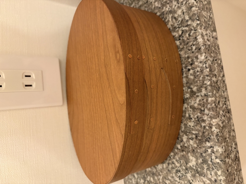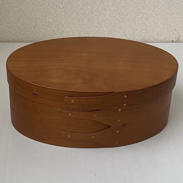 シェーカーボックスは、曲げ木の滑らかな曲線の美しさと、木製ならではの温かみを感じるデザイン。側面の木材を留めるツバメの尾のような仕立てと、真鍮のリベットからは、手作業の跡のような素朴な雰囲気を感じます。