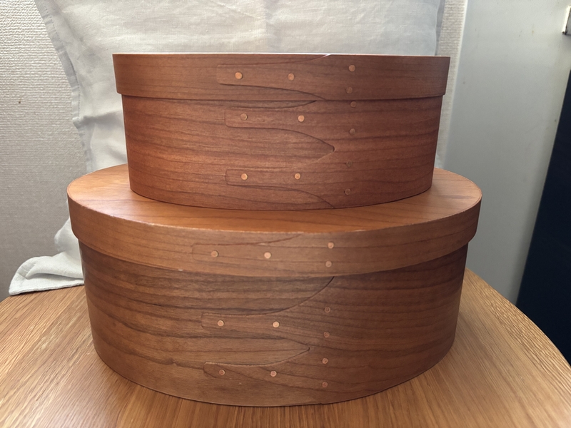 実際に2年間ほど使用しているシェーカーボックスと比べてみると、その変化がお分かりいただけるかと思います。色味が濃く、艶がでてきて良い飴色に。