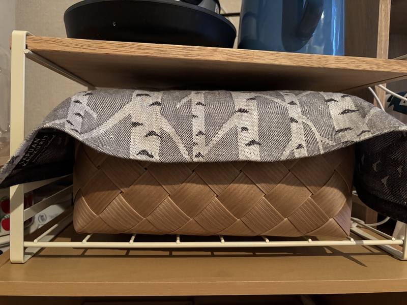 今まで棚に別のカゴを置いてお菓子入れにしていましたが、