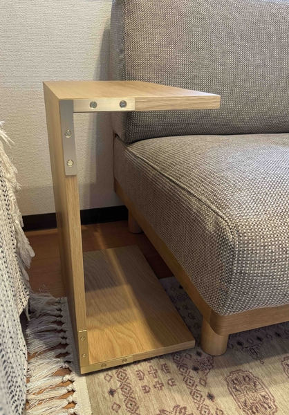 そんなfolkソファーでの生活をさらに快適にしてくれる、サイドテーブルが完成しました。写真を見ても分かる通り、folkソファーのアーム部分にぴったり合うよう作られた専用設計のサイドテーブルです。