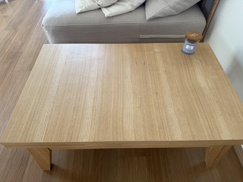 1人暮しの時はメインテーブルとして友達呼んだ時には伸ばしてみんなで囲ってました、2人暮らしはリビングテーブルとして使い続けています。
