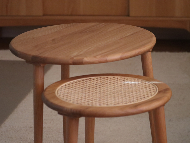 旧来の「ちゃぶ台文化」から、現代のスタイルにあったリビングへの転換としてのサイドテーブルの提案となるネストテーブル RattanMix/NAですが、ただ小さくなっただけでは、メリット・デメリットの取り合いになってしまいます。