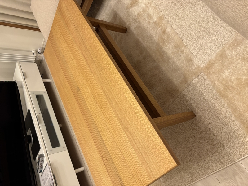 オーク無垢材は非常に硬く、耐久性に優れているため、古くから家具づくりに用いられてきました。毎日使うテーブルだからこそ、頑丈でしっかりとした作りは安心感があります。
