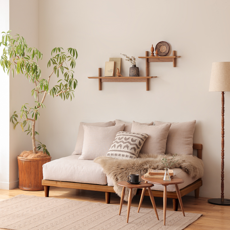 リネン生地をはじめとした明るい色味の生地との相性が良く、ナチュラルなお部屋作りにおすすめです。