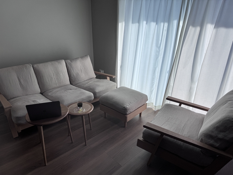 AGRAソファを4年ほど愛用しておりましたが引越に伴い、木造建築にあう木の材質が際立ったNOANAソファを選びました。