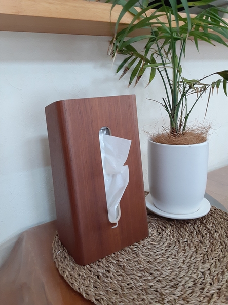 インテリア性の高いデザインと、美しい木目が特徴のRINシリーズのティッシュケース。縦置きタイプなので省スペースで活用できます。