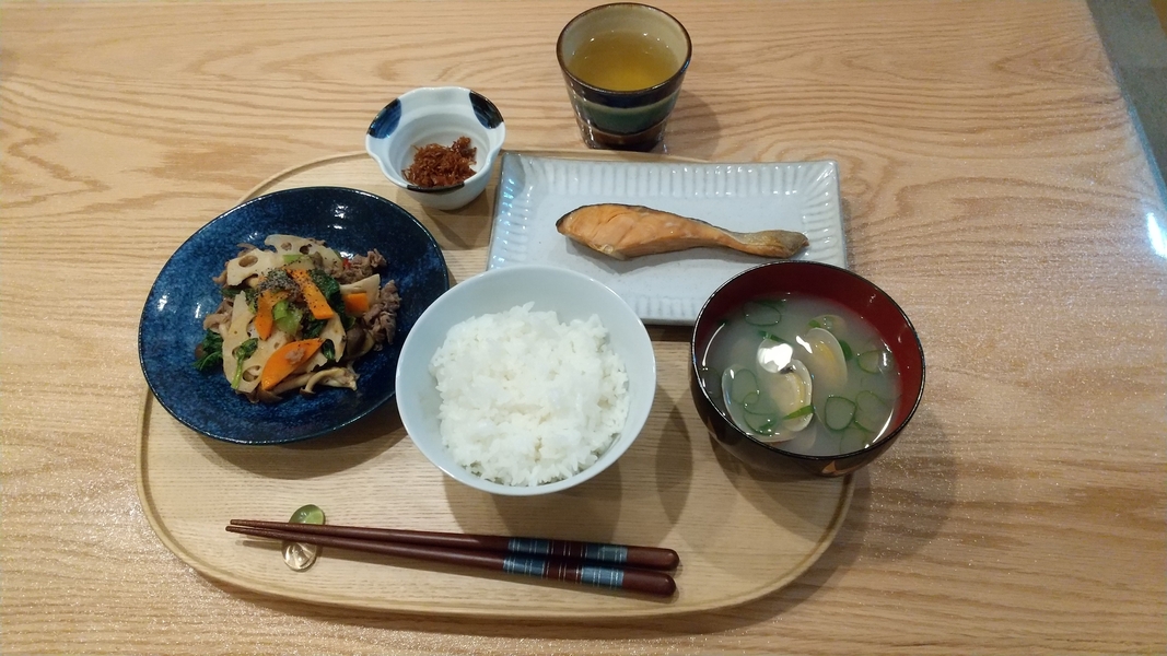 そんなとき、お盆へひとまとめにしておくと、毎日のちょっとした手間が省けて、食事時間がぐんと快適になります。