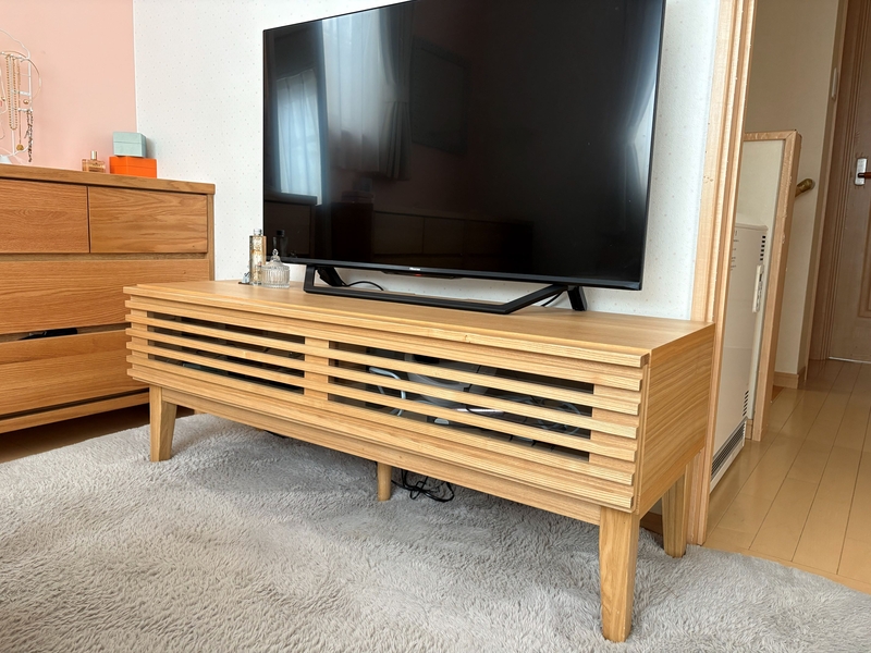 木目を生かした、格子状のシンプルなデザインは、様々なテイストのお部屋に馴染みます。AV機器などで、ごちゃっとしがちなテレビ回りも、すっきりとした印象に。