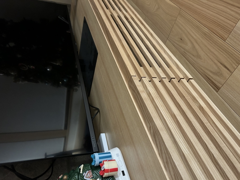 そしてテレビボードの中身って、AV機器やDVDのパッケージなどで意外と散らばりがちですが、格子状のデザインになっていることで、中に入っているものが目立ちません。
