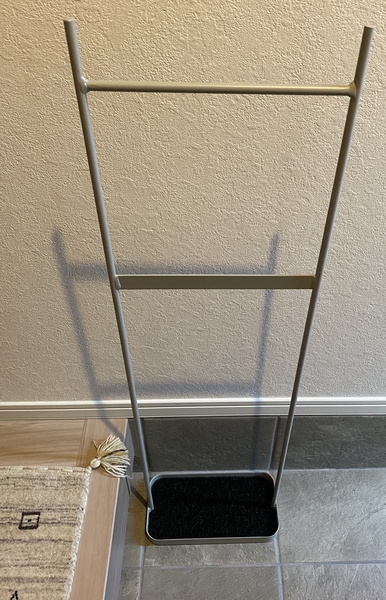 お子様のレインコートも、玄関で脱いでササッとかけるだけ。濡れたままでも気にせず干しておけるのは便利なところです。